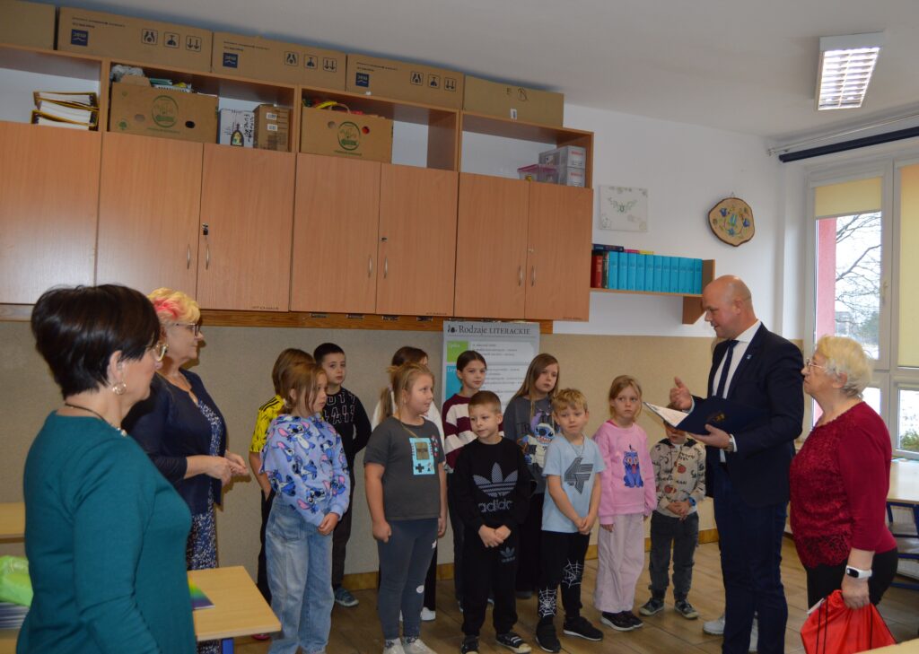 Dziś Wójt Daniel Chwarzyński, Sekretarz Grażyna Bodnar, a także przedstawicielki Gminnej Rady Seniorów oraz członkinie Komisji Konkursowej – Pani Irena Andrys i Pani Krystyna Surowicz – odwiedziły szkoły z terenu naszej gminy, aby wręczyć dyplomy i upominki uczestnikom konkursu plastycznego pod Patronatem Gminnej Rady Seniorów „Aktywni razem dzieci i seniorzy – zdrowia ambasadorzy”.