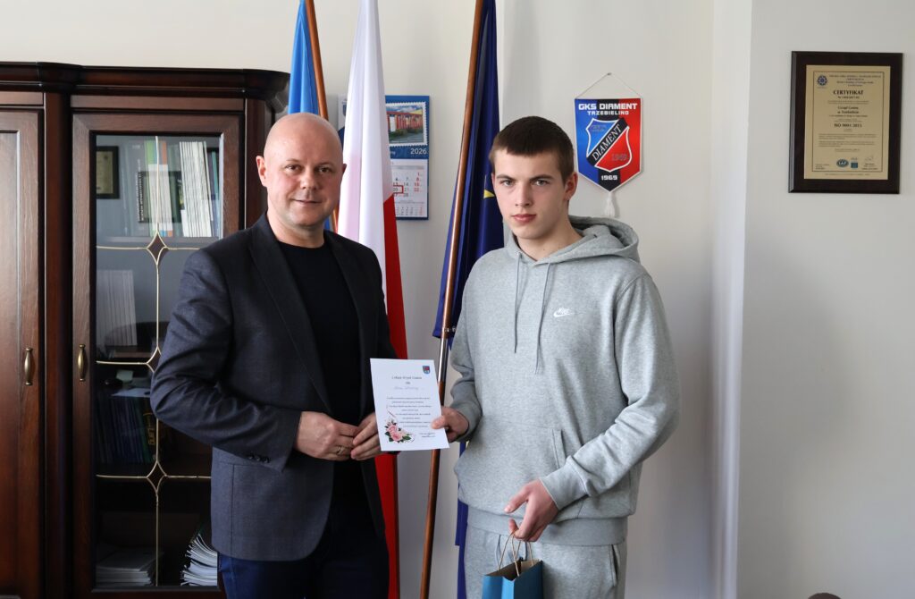 Adrian, który niedawno obchodził swoje 18. urodziny, odwiedził Urząd Gminy Trzebielino, aby odebrać swój dowód osobisty. Była to również okazja do spotkania z Wójtem Gminy Trzebielino Danielem Chwarzyńskim.
