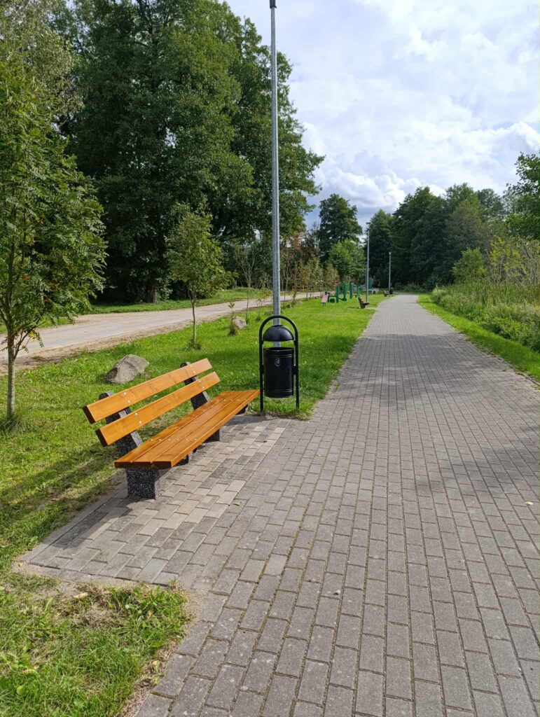 W ramach projektu zakupiono: ekspres do kawy, głośnik przenośny, słupki dekoracyjne, dziesięć zestawów kijków do nordic walking oraz cztery ławki, które zamontowano przy ścieżce rekreacyjnej nad jeziorem Trzebielińskim. Wszystkie te elementy będą wykorzystywane podczas wydarzeń dla seniorów oraz całej lokalnej społeczności.