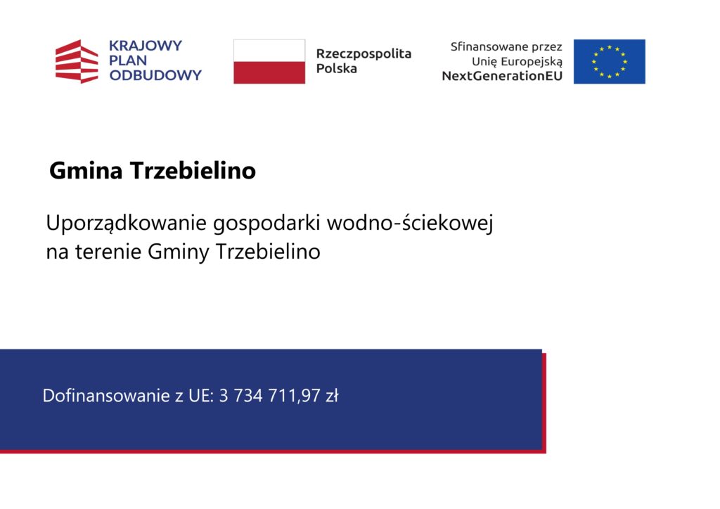 Dzięki realizacji tego przedsięwzięcia wykonamy nowe sieci – wodociągową i kanalizacyjną w Trzebielinie. Gruntownie przebudujemy przepompownie ścieków w Zielinie i w Starkowie, opartych o pompy zanurzeniowe, które w ostatnich latach ulegają częstym awariom i wymagają pilnych potrzeb inwestycyjnych. Wykonamy drugi etap modernizacji oczyszczalni w Zielinie.