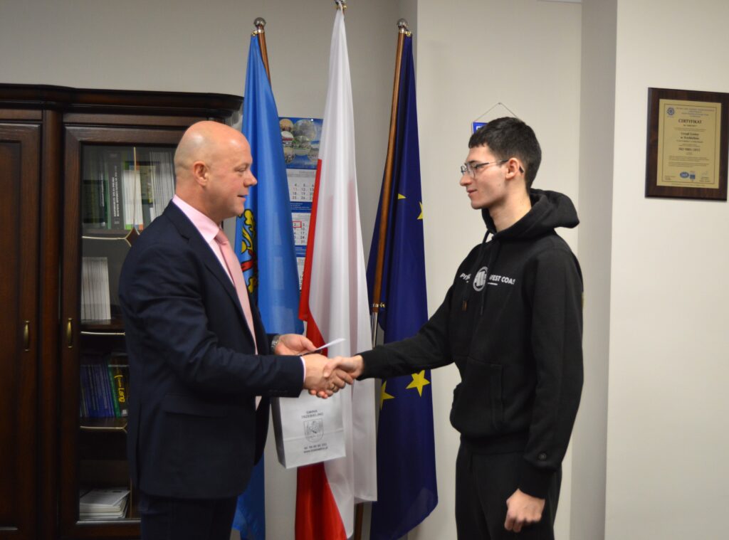 Mateusz niedawno obchodził swoje 18. urodziny i była to doskonała okazja do spotkania się z Wójtem Gminy Trzebielino, Panem Danielem Chwarzyńskim.